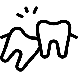 Смещаясь, зуб начинает притираться к соседним, повреждая эмаль — возникает кариес: